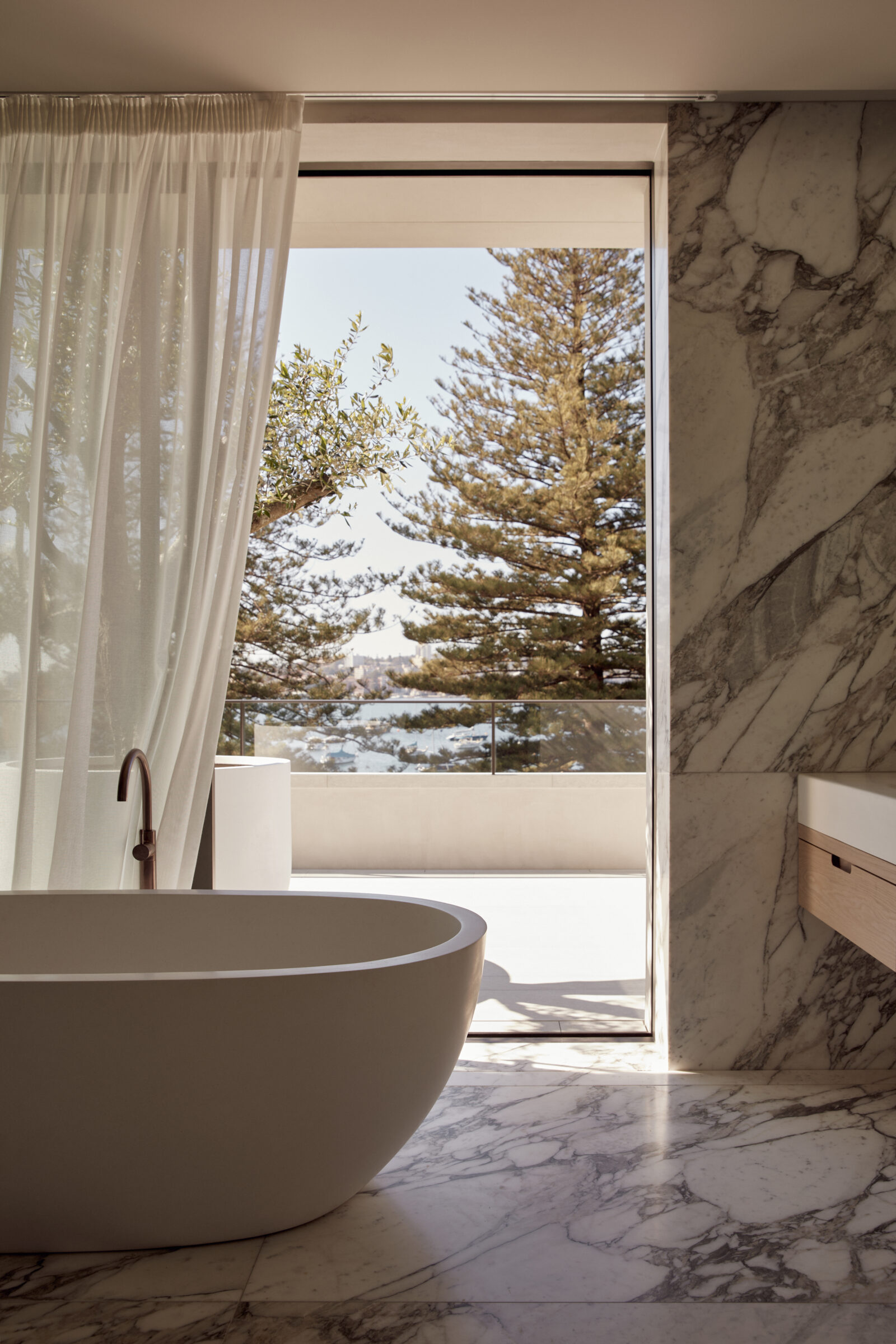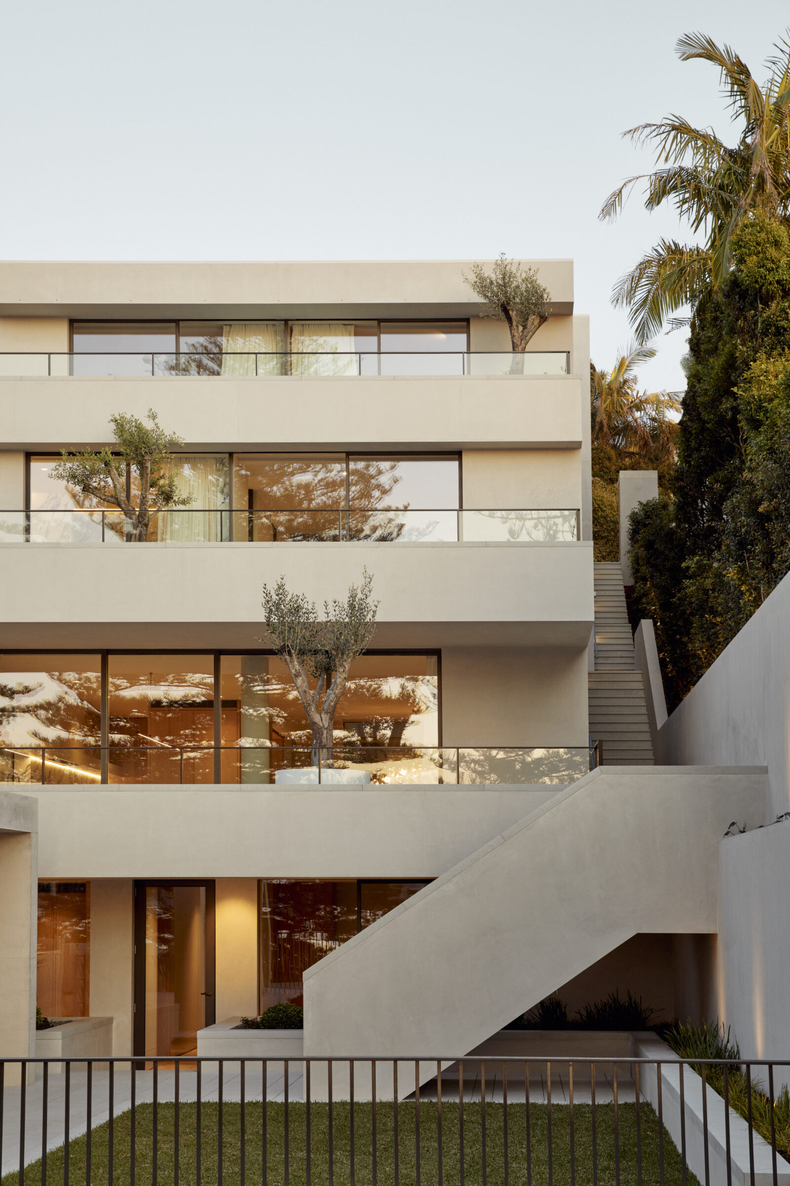 Coming from Melbourne, we noticed it can be more humid in Sydney so we focused on different ways to incorporate ventilation and cross ventilation, especially important on such a rectilinear site. That’s where the idea of cutting the building into two parts emerged. One part can look through a garden, through the second part and on to the foreshore, creating more facades that face the water. The more facades we have, the more ventilation.