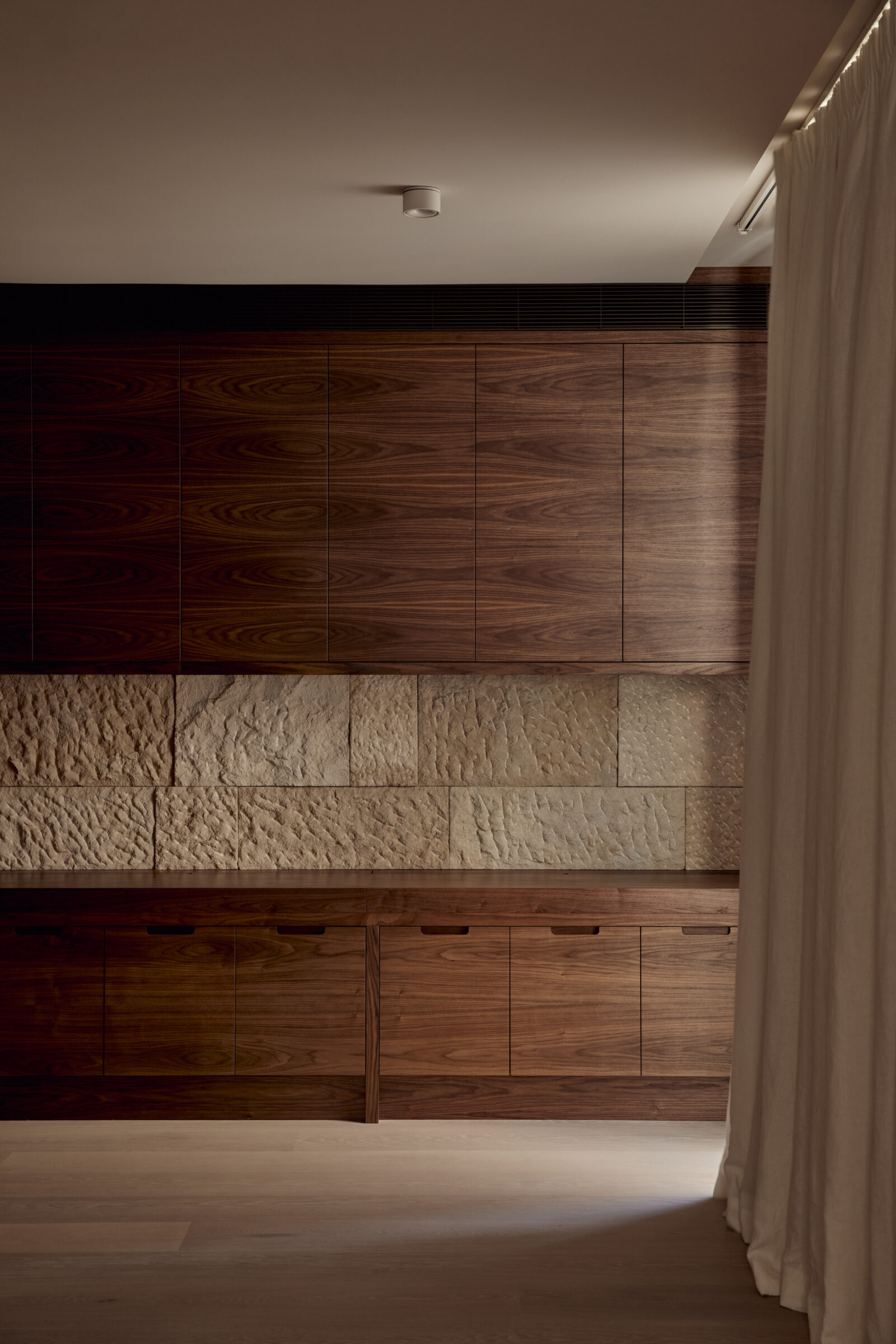 The overall finish is excellent. There’s nowhere to hide in this building and Bellevarde were up to the fine tolerances required and finished the project in an exemplar way. The simple elements are often the hardest to get right. Getting things to line up and be completely flush where you’ve got different materiality can be very difficult. Especially when things are pared back as they are here. The painting is fantastic, the stone masonry, the rendering, the precision of the meeting of all the materials—timber, plaster, stone reveals, all seamless. The level of technical ability that Mick and the team were able to achieve is outstanding.