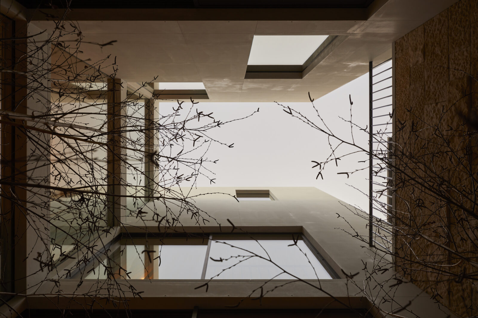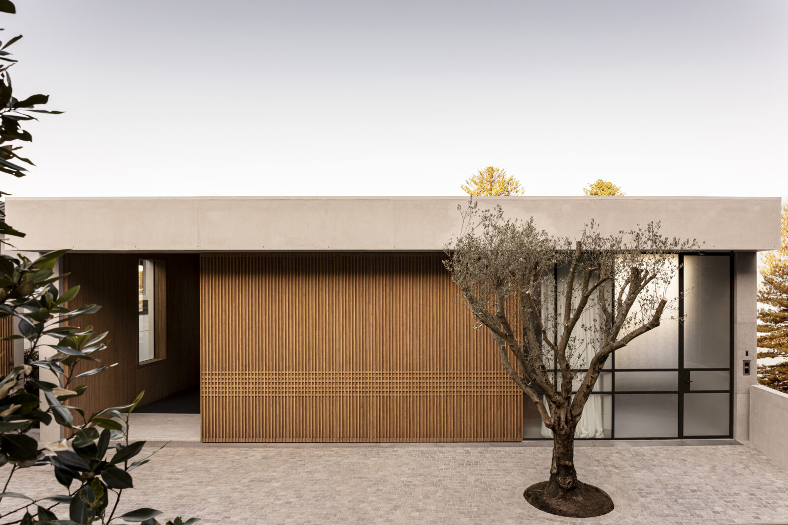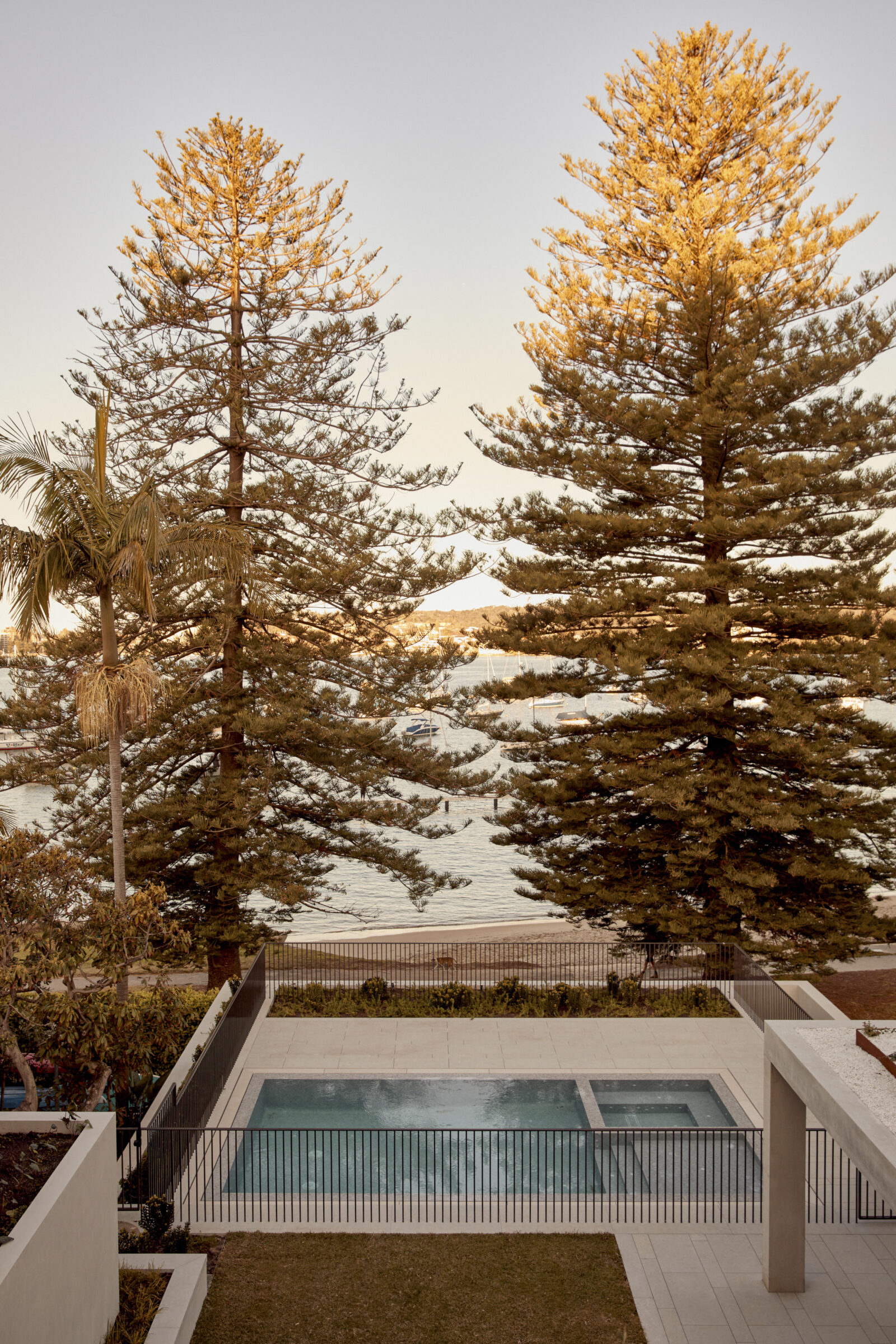 The front elevation might be my favourite part. It creates a sense of privacy. There’s no hint at what lies behind. It portrays itself as a very simple, quiet, elegant single storey building—with fine detailing of timber and render. From the street, you have no sense that there are six storeys looking over the harbour.