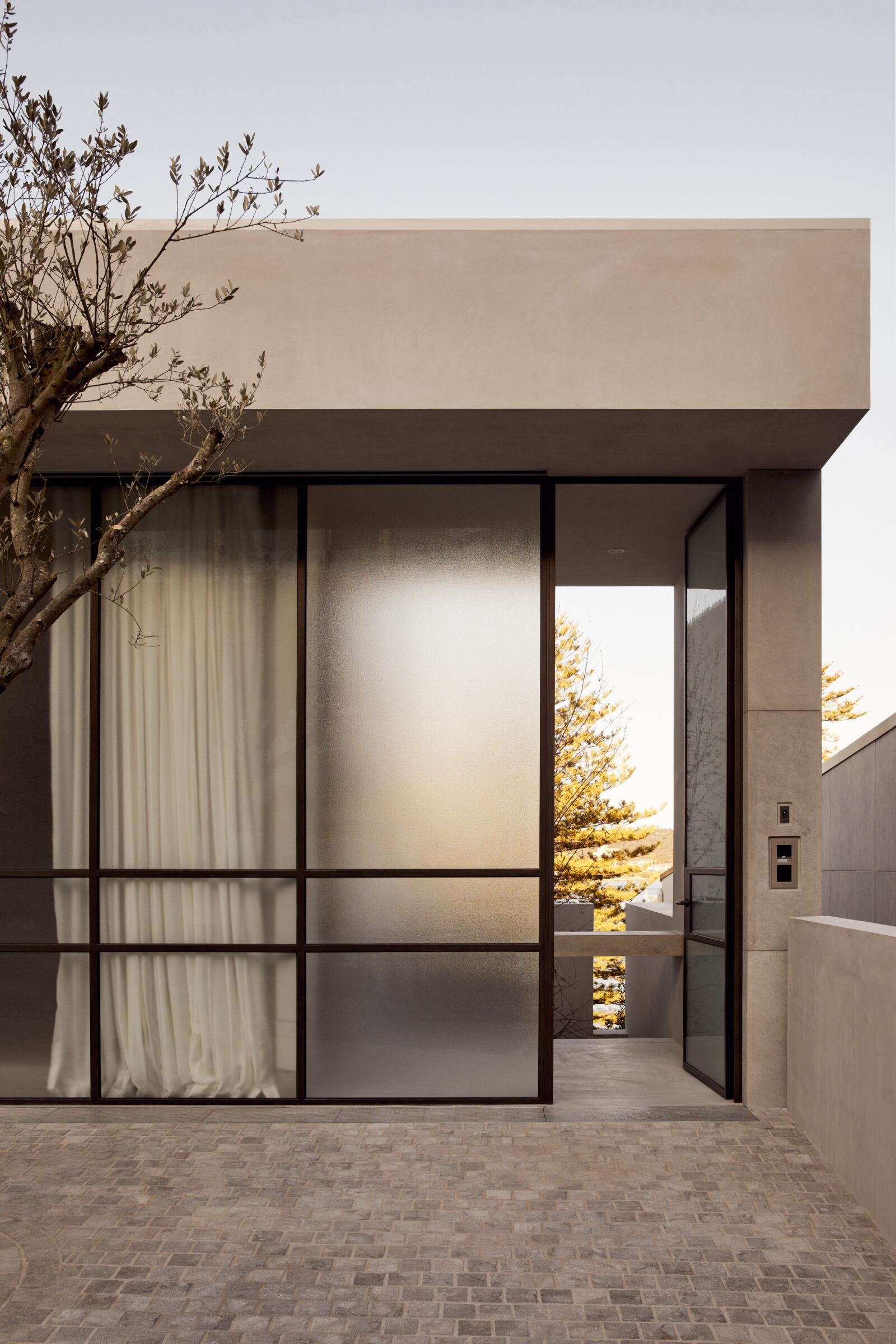 We wanted to create something that had the air of the public spaces in Europe—those cobblestoned areas there’s no clear delineation of where a car is supposed to be, where a person can be. We had a mature olive tree craned in. In that space, you could have a party, or park four big cars, or put a long table and eat lunch under the tree. We like that feeling of openness and utility.